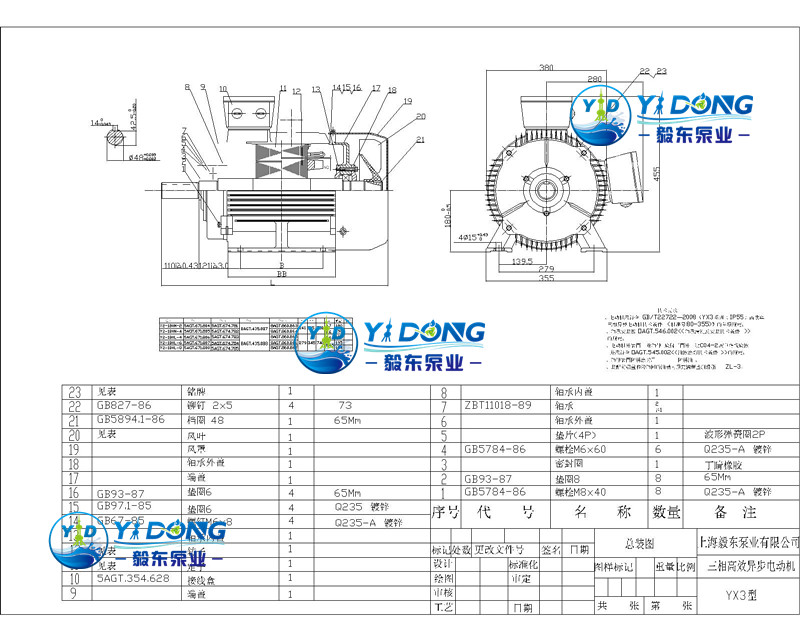 1、YX3型三相高效异步电动机的结构,由定子、转子和其它附件组成。