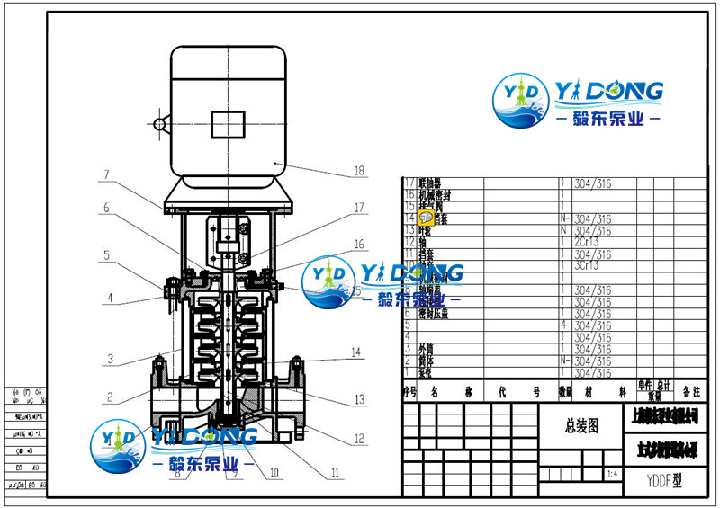 YDDF型轻型多级管道离心泵(YDDC型轻型多级管道离心泵)是一种多功能产品,吸取了国内外先进技术而设计制造的非自吸立式多级离心泵,采用标准立式电机和快装式机械密封,更换非常方便。可以输送从自来水到工业液体的各种不同介质,适应于不同温度、流量和压力范围.YDDC型轻型多级管道离心泵适用于无腐蚀性液体,YDDF型轻型多级管道离心泵适用于轻度腐蚀性液体。