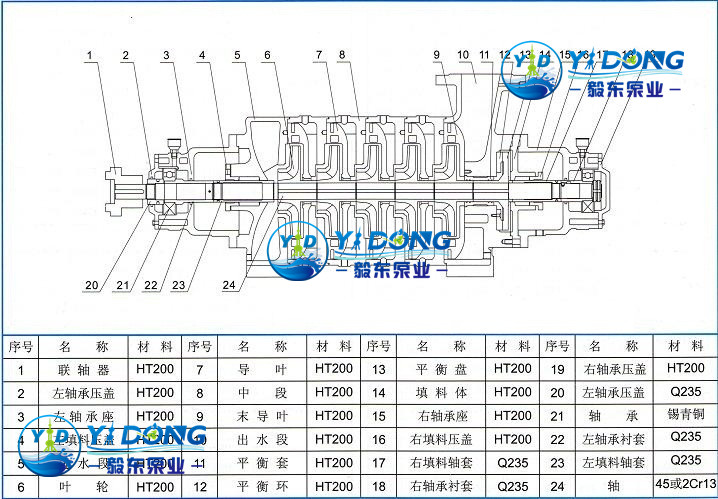2.TSWA型卧式多级离心泵主要由进水段、中段、导叶、叶轮、出水段及轴承体部件、密封部件等组成,其结构设计合理;