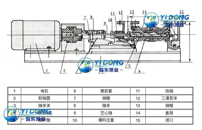 I-1B型浓浆泵:传动件(主轴、螺杆和绕轴)为不锈钢制造,适用于一般微酸、碱浆液输送。