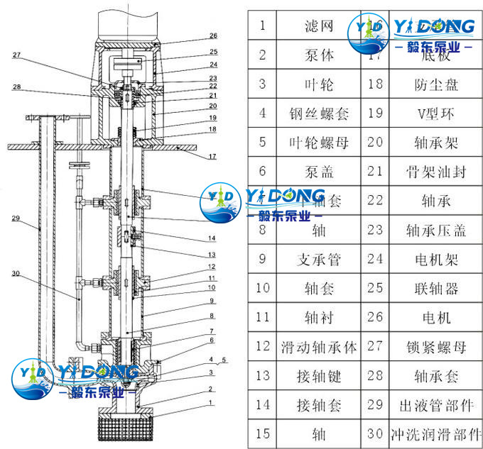 2.取消了机械密封,解决了其他液下泵因机械密封容易磨损而须经常维修的烦恼,节约了泵的运行成本,提高了工作效率。