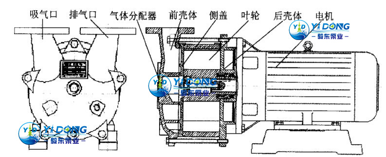 2BV型水环式真空泵为整体结构—机泵同轴的单级泵。轴封采用机械密封,具有结构简单,安装简捷、无油、安全可靠等特点。安装时只需要一水平平面即可,无需底盘。