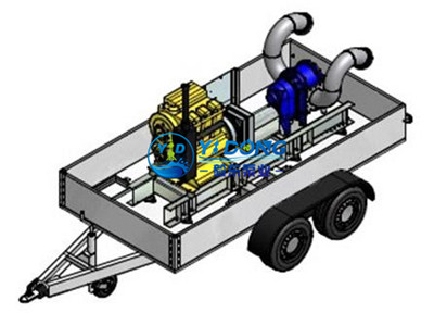 拖车式移动泵站主要采用柴油机直接带动自吸排污泵抽水,该移动泵站体积小便于移动,在大车不能进入的地方该移动泵站便于进入抽水,该移动泵站泵车柴油机可以采用欧三排放标准,可以实现电控操作,带自我保护功能,油压过低、水温过高发动机自动熄火电启动方式、靠水泵端还可以安装两只100W车用照明灯实现夜间作业照明的功能。