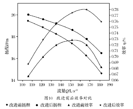 c、在不改变水平中开双吸泵原叶轮设计的基础上进行切割叶片进口边的优化方案,可以使得最高效率点比原设计向大流量方向偏移,基本可以提高了3-5%效率点,从而可以接近使用前的工作状态。
